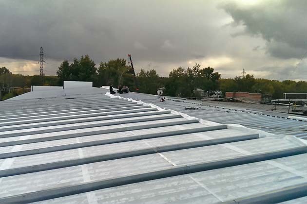 Кровля − конструкция, защищающая быстровозводимое здание от атмосферных осадков и других погодных явлений. Верхняя оболочка крыши это − водонепроницаемая кровля. Вместе с чердачным перекрытием крыша образует покрытие строения. Для быстровозводимых зданий кровля в основном выполняется из сборных или заводских сэндвич панелей.