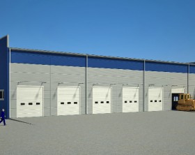 Проектирование производственной базы для обслуживания и ремонта дорожно-строительной техники. Здание размером 30х48м. В зданий предусмотрен двухэтажный административно-бытовой блок размером 10х30м. В основной части здания для ремонта техники предусмотрена кран-балка г/п 10тн и усиленные бетонные полы для тяжелой гусеничной техники.