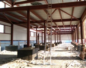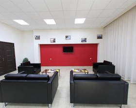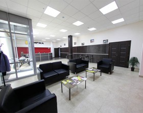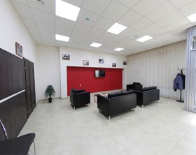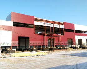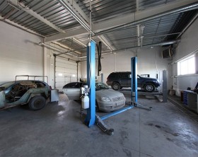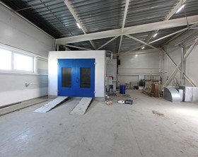 Здание с металлическим каркасом. Стены и кровля выполнены из сэндвич панелей. Здание размером 12х66м, частично двухэтажное. На первом этаже расположены помещения ремонтных мастерских, рецепшн и бытовые помещения. На втором этаже расположены магазин автомобильных запчастей и офисные помещения. В здании будет производиться профессиональный кузовной ремонт, диагностика и ремонт электрооборудования автомобилей.